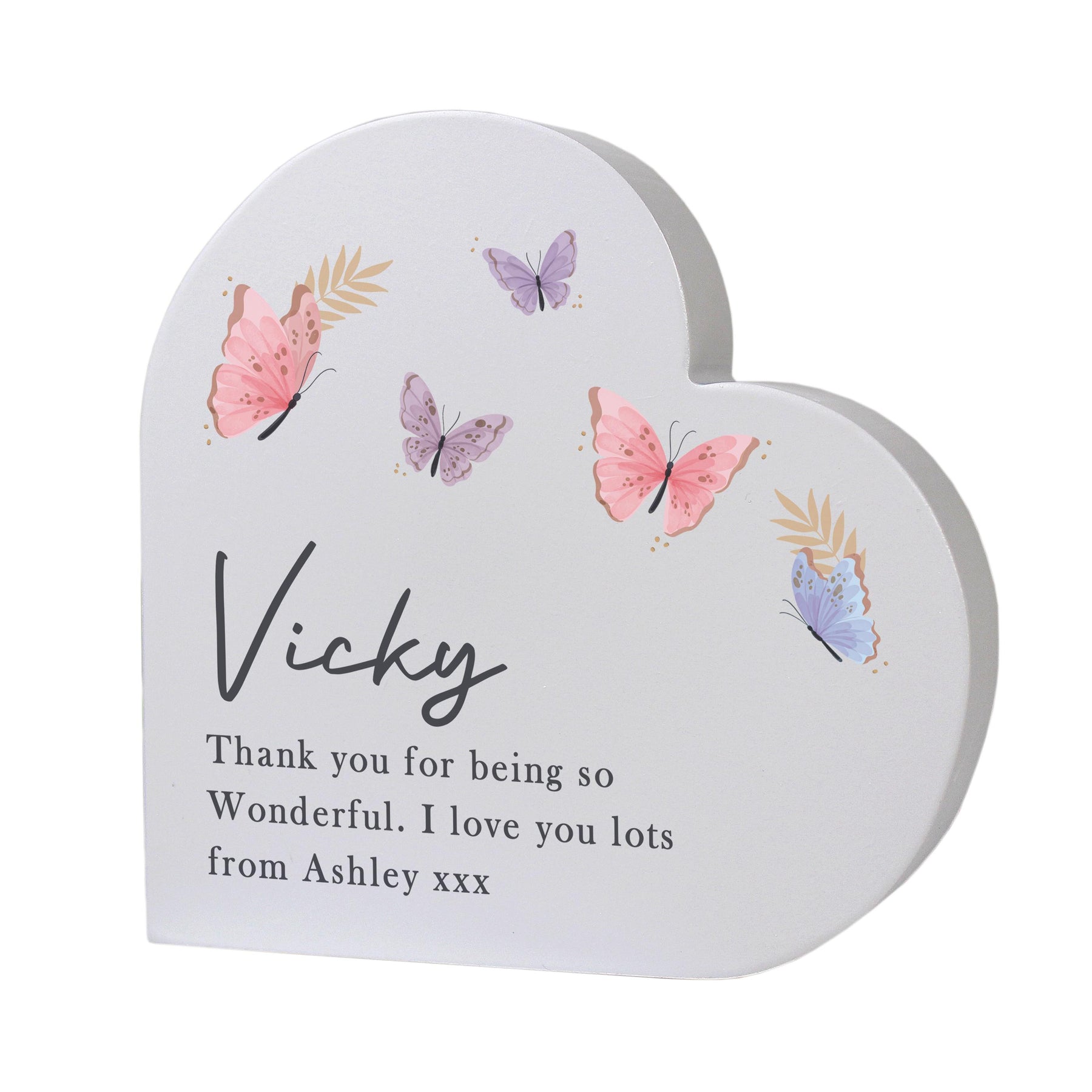 You can personalise this free standing heart ornament with up to 4 lines of text as below