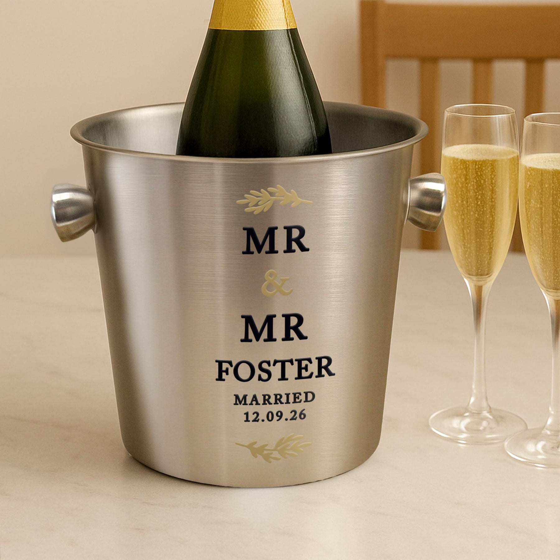 Personalise this stainless-steel ice bucket with the following